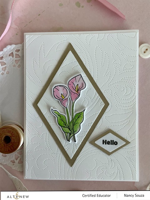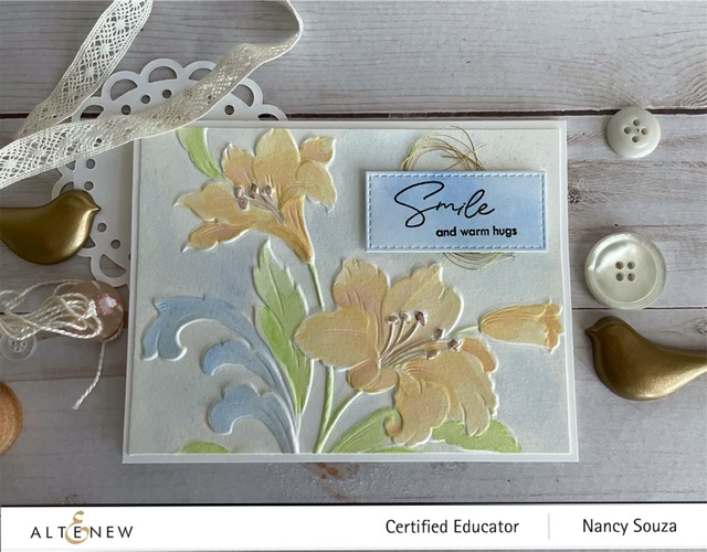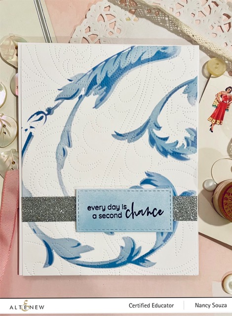 This newest Altenew release set includes an awesome variety that includes 3 D embossing folders, layering stencils and coordinating dies. Everything in the set is awesome and different and could not wait to start planning and creating cards. Here are the cards I created using the materials from this set. There are more choices to select from and these are the ones I selected to work with. Your turn to be inspired!