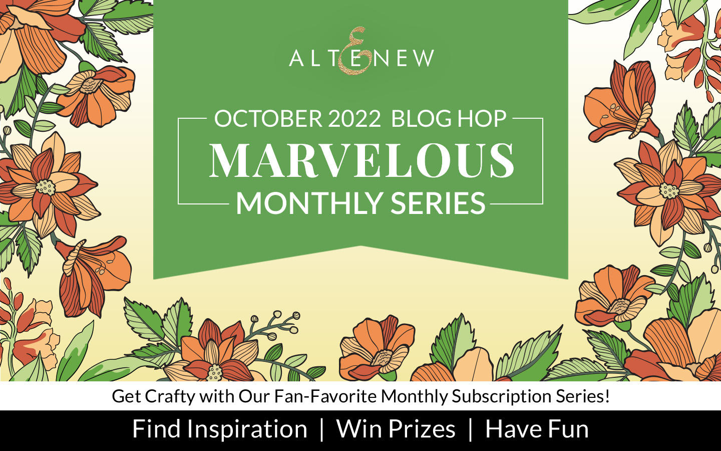 Please join me for the newest Altenew Monthly Marvelous Monthly Series for the month of October. There are a total of $300 in total prizes! To celebrate this release, Altenew is giving away a $50 gift certificate to two lucky winners and a $25 gift certificate to eight winners! Please leave a comment on the Altenew Card Blog and/or each designer’s Blog post on the Blog hop list below by October 18, 2022 for a chance to win.