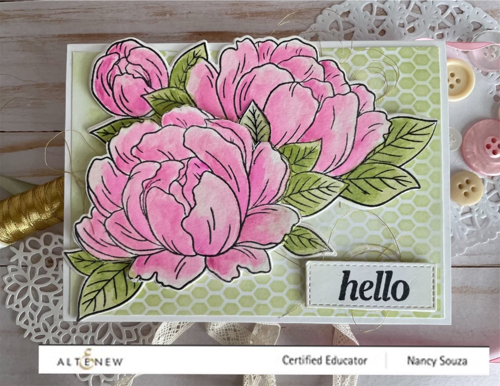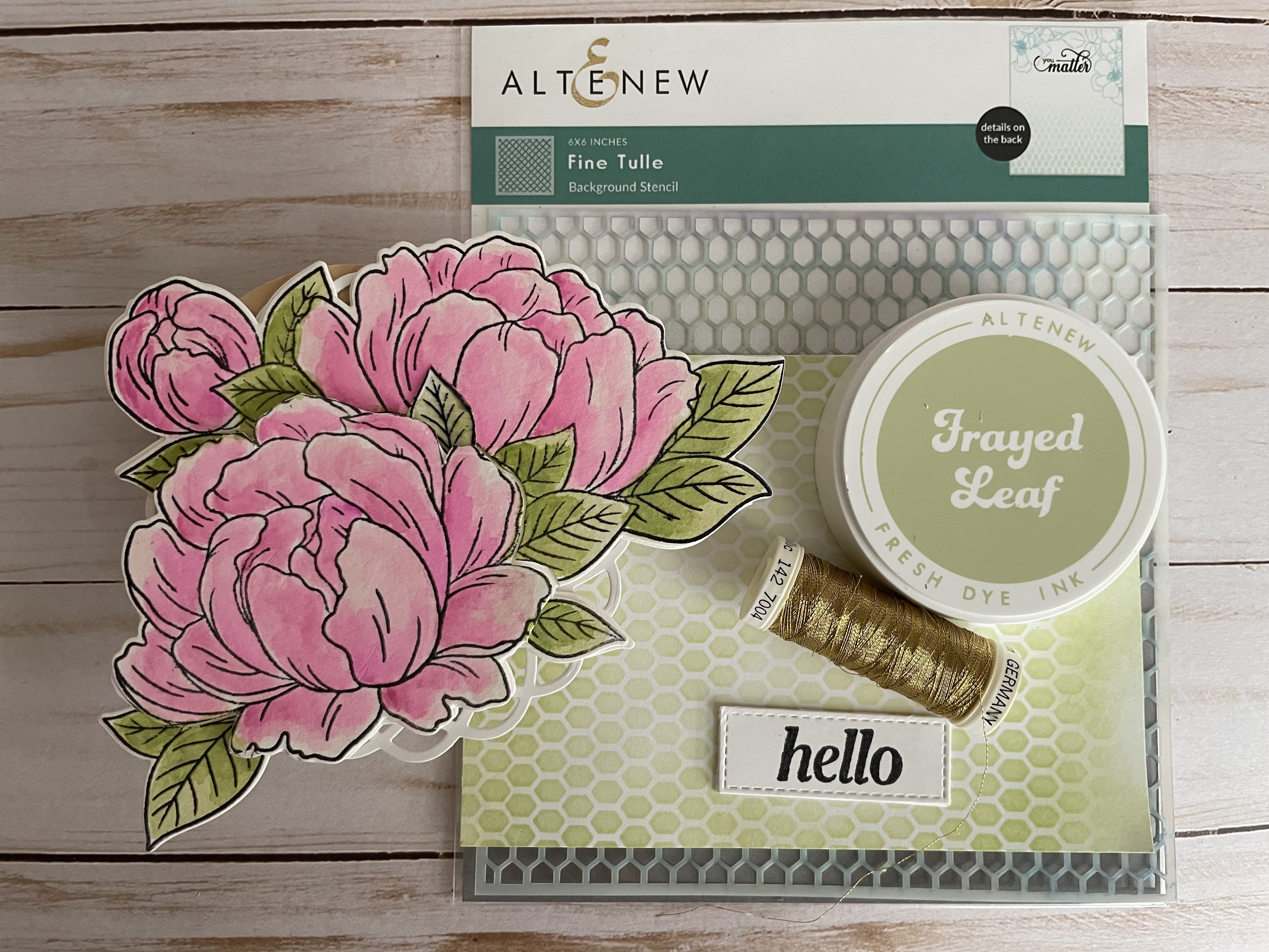 - Altenew Gracious Peonies layering stencil (did not use for this card)